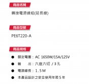 PE6T220-A 3孔六座六切 電源延長轉接線