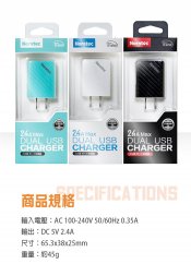 TC-A240W 色彩繽紛2.4A 雙USB輸出變壓器 - 白色