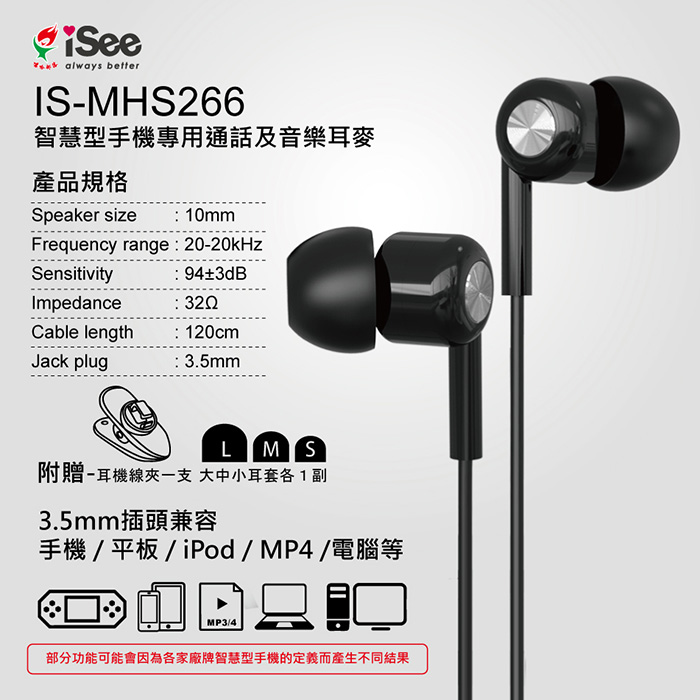 IS-MHS266W 智慧型手機專用通話及音樂耳麥(白) - iSee
