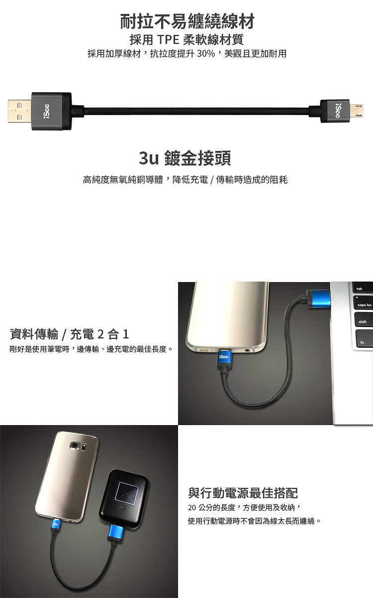 IS-C62(GO) Micro USB 鋁合金充電/資料傳輸線 20cm - 金色 - iSee