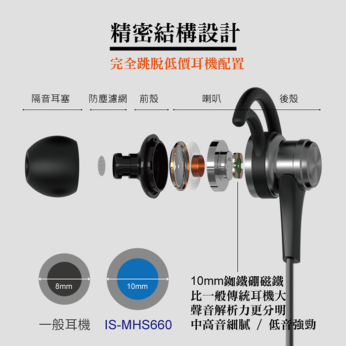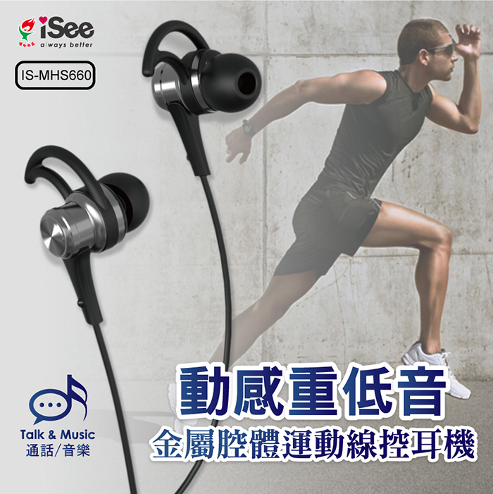 IS-MHS660K 運動型智慧手機專用通話及音樂金屬耳麥(黑) - iSee
