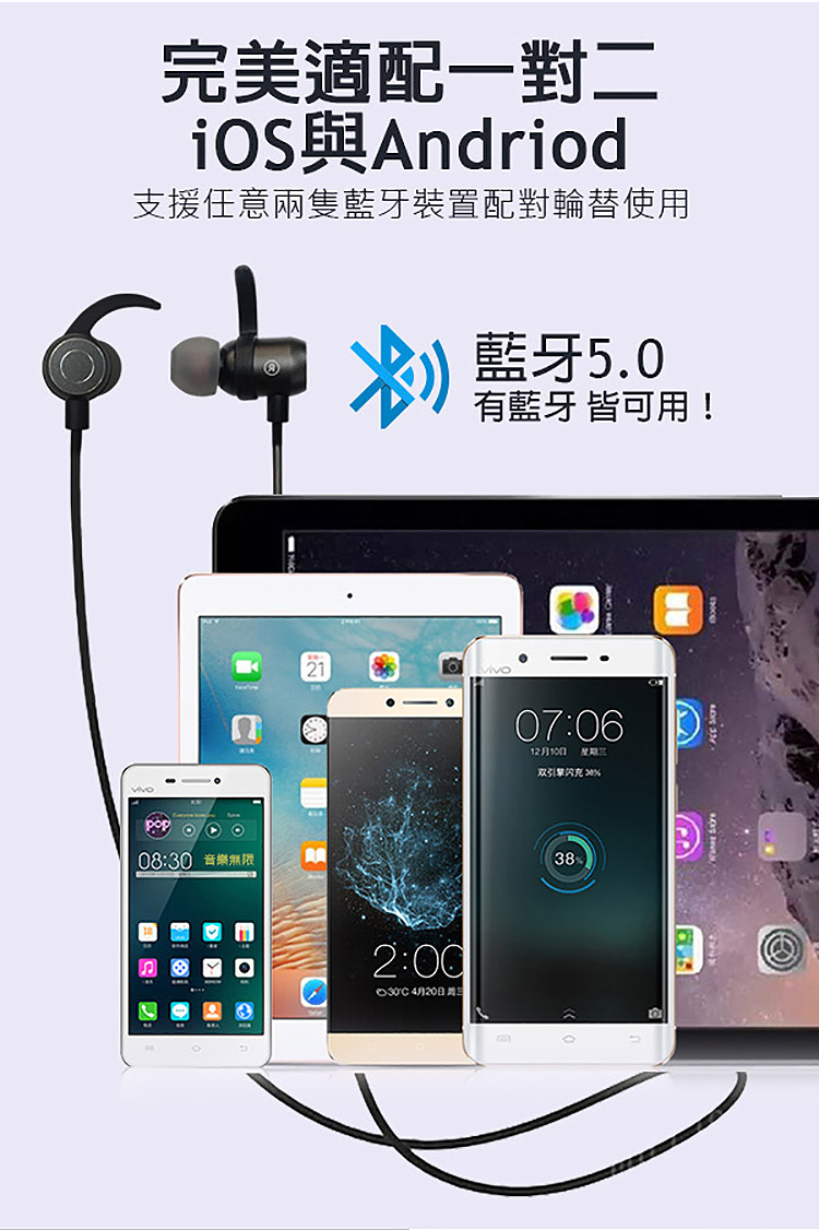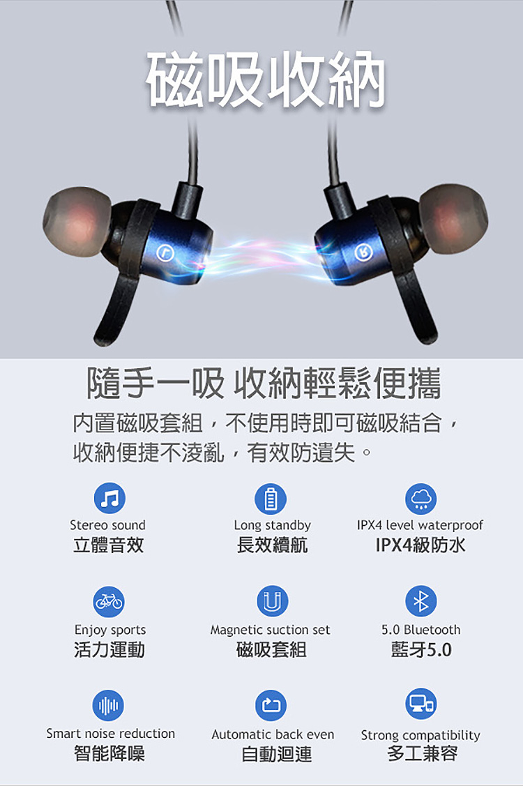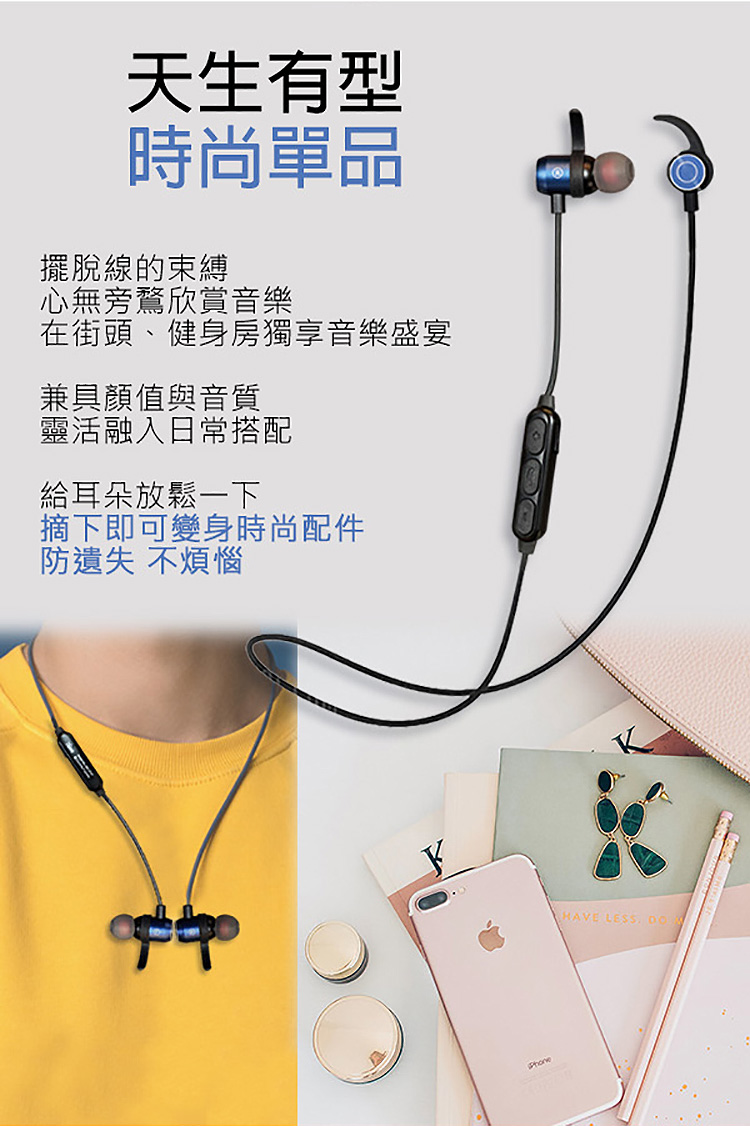 • 藍牙V5.0,磁吸項圈功能,音樂通話隨身走