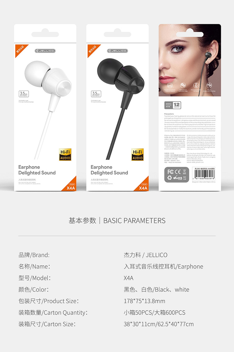 JEE-X4A-WT 超值系列入耳式音樂線控耳機-白色 - JELLICO