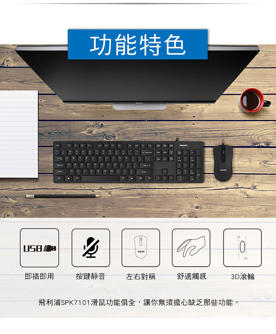 SPK7101 靜音有線滑鼠 - PHILIPS飛利浦