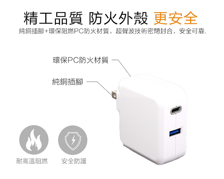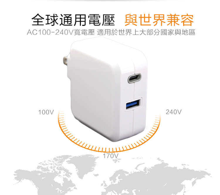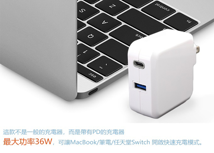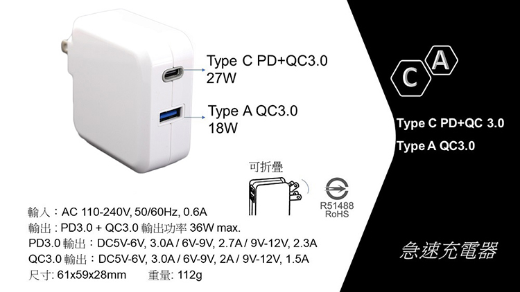 TC-KPD36WD 36W Type C PD3.0/USB QC3.0 可折疊插頭電源急快速充電器