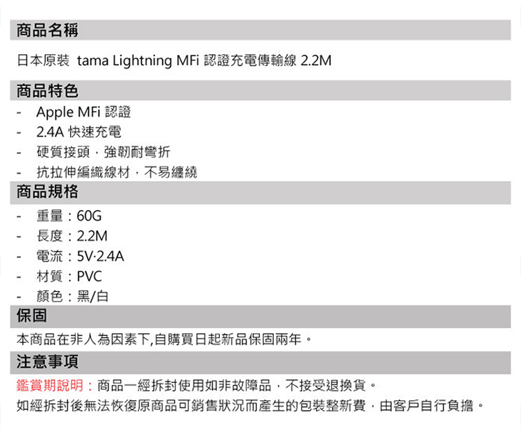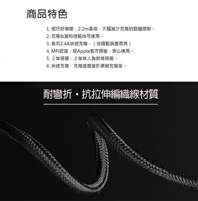 ■ 抗拉耐曲MFI認證、2.4A高速輸出