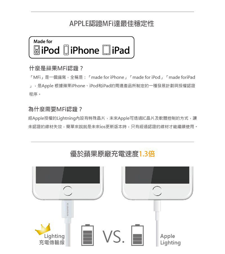 坿”¯æ´iPhoneã€iPadã€iPodç‰å‚³è¼¸/充電用(for Lightning)
