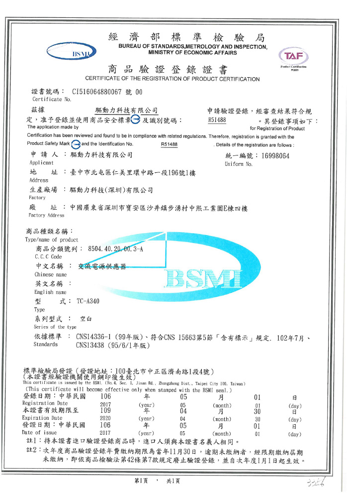 ◆ 通過台灣BSMI認證:R51488