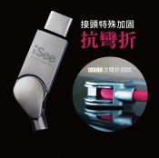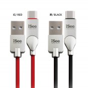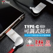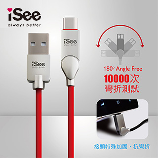 IS-CA57R TypeC轉USB A可彎折鋁合金充電傳輸線/支援快充QC3.0/1.2M/紅 - iSee