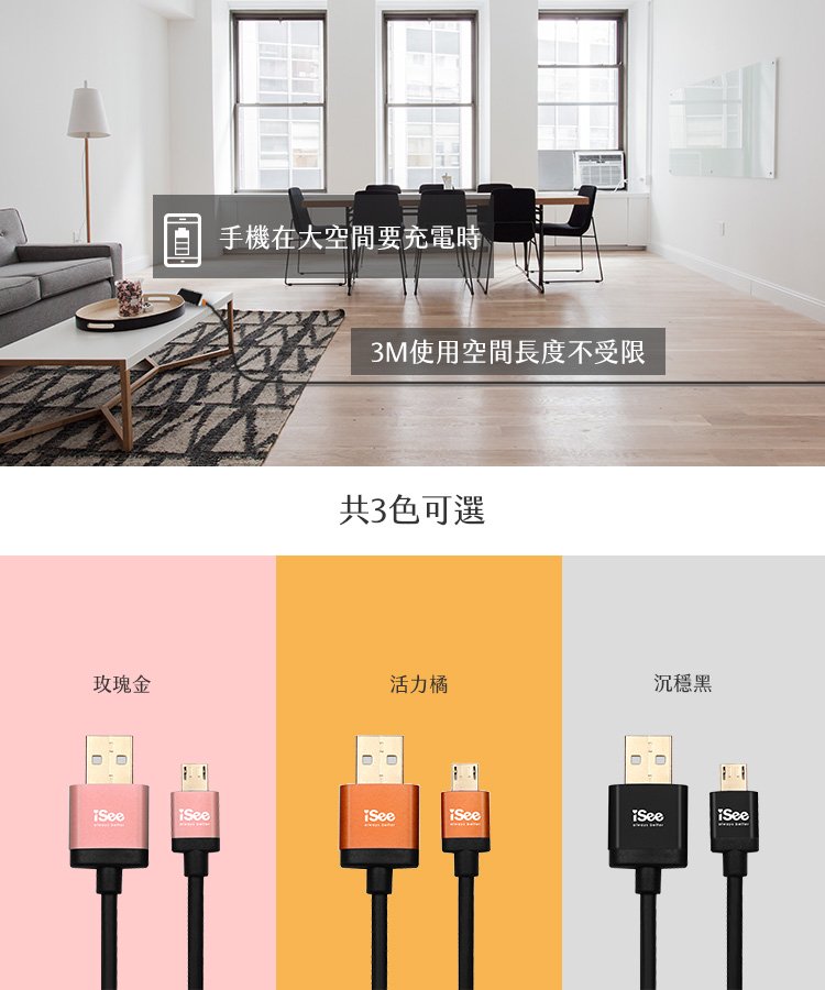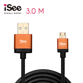 IS-C83(O) Micro USB 鋁合金充電/資料傳輸線 3M 活力橘 - iSee