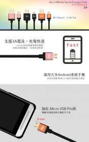 IS-C83(O) Micro USB 鋁合金充電/資料傳輸線 3M 活力橘