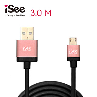 IS-C83(P) Micro USB 鋁合金充電/資料傳輸線 3M 玫瑰金 - iSee