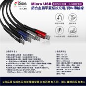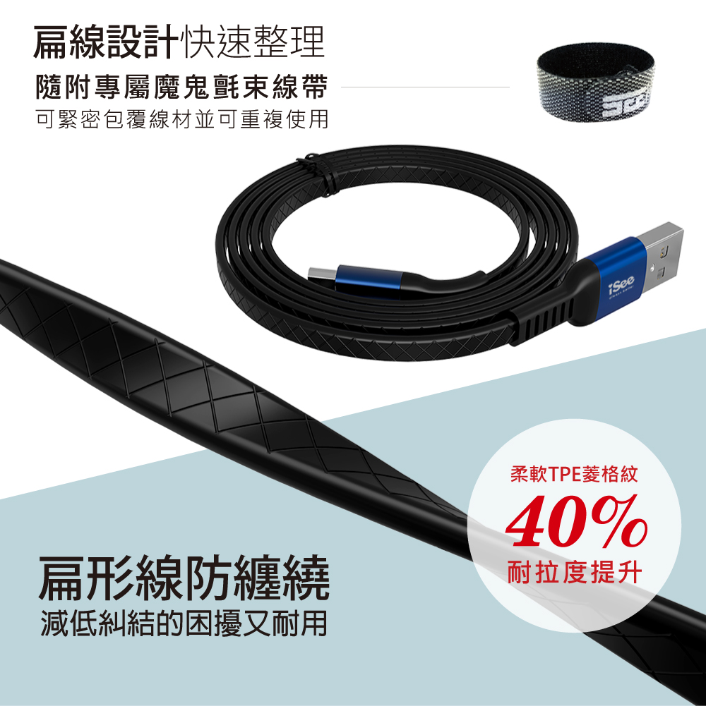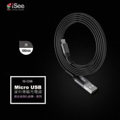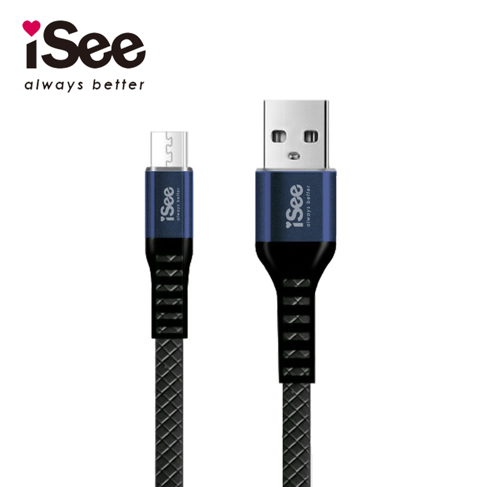 IS-C66B Micro-B鋁合金扁平菱格紋充電/資料傳輸線-1米(藍色) - iSee