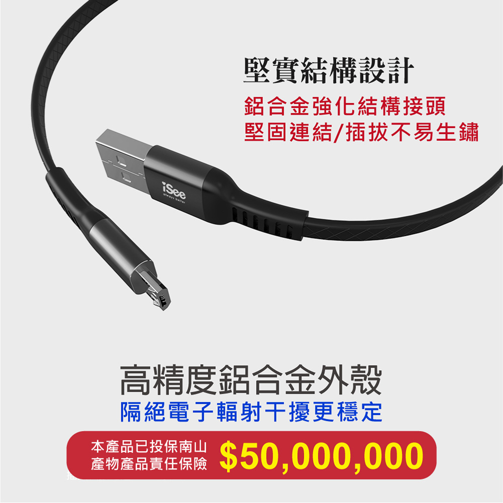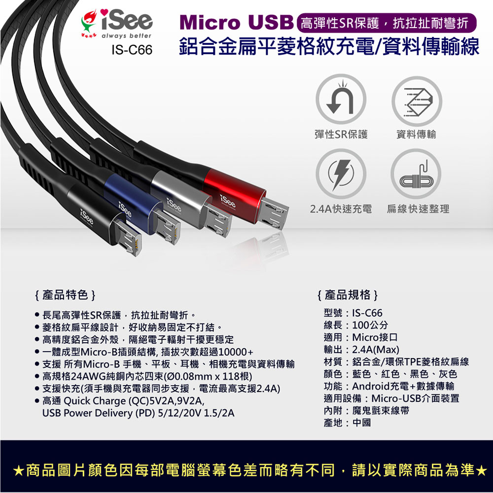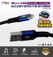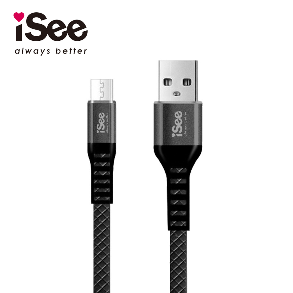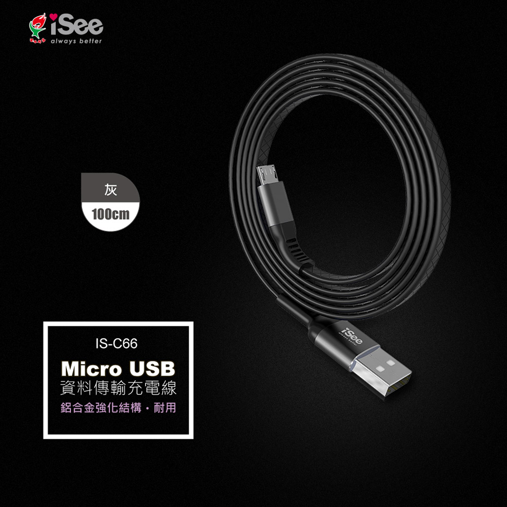IS-C66G Micro-B鋁合金扁平菱格紋充電/資料傳輸線-1米(灰色) - iSee