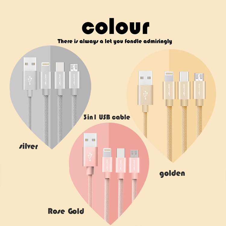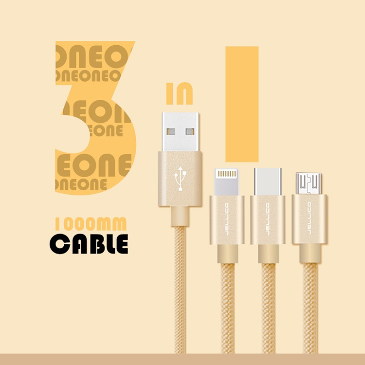 JEC-GS13-SR 1.2M 優雅系列 3合1 Mirco-USB/Lightning/Type-C 充電線-銀色 - JELLICO