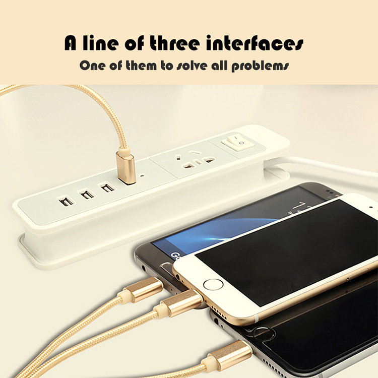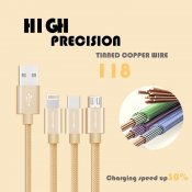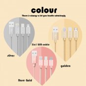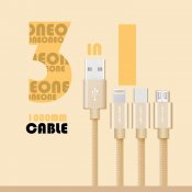 JEC-GS13-SR 1.2M 優雅系列 3合1 Mirco-USB/Lightning/Type-C 充電線-銀色